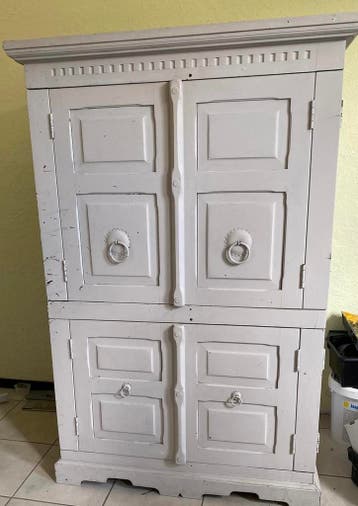 Mooie, ruime koloniale kast, geschilderd in een stijlvolle grijze krijtverf. Deze kast biedt perfecte extra opbergruimte voor elke kamer. Met afmetingen van 1.49M hoog, 0.98M breed en 0.67M diep past