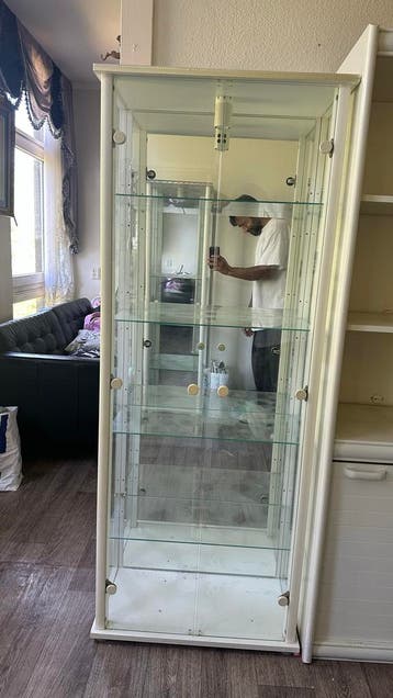 Gratis af te halen: een nette vitrinekast met glazen deuren en glazen planken. Ideaal voor het tentoonstellen van verzamelingen of decoratie. De kast is gebruikt, maar in goede staat. Afmetingen: hoog