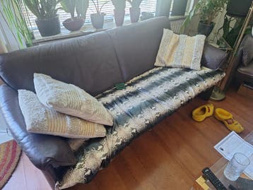 Leren bankstel de bank heeft scheurtjes in de zitting vandaag die mooie kunstlederen lap stoelen mogen ook apart opgehaad worden. Gratis
