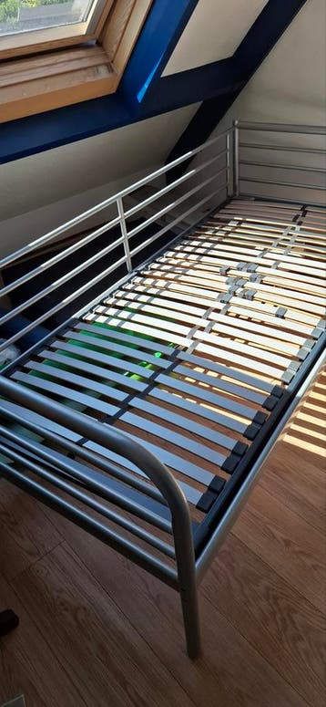 Gratis ophalen i persoons ijzeren bed + lattenbodem. Eventueel met matras is al uit elkaar. 200×90 Cm. Mag ook apart opgehaald worden.