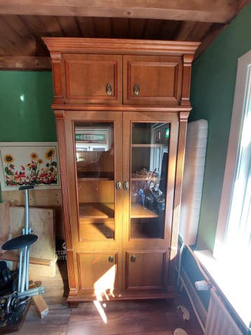 Mooie, ruime kast gratis af te halen. De kast heeft zowel glazen deuren als dichte deuren en biedt veel opbergruimte met meerdere planken. Achter de glazen deur zit een lampje. Ideaal voor de woonkame