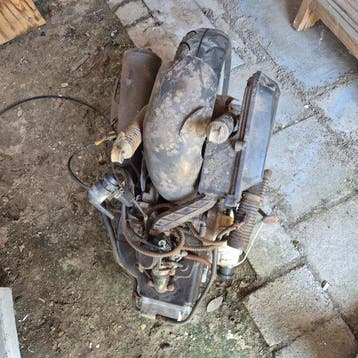 Aangeboden: een gebruikt scooter motorblok, ideaal voor onderdelen of revisie. Het blok is vuil en heeft duidelijke gebruikssporen, zoals te zien op de foto's. De staat is onbekend, dus het wordt