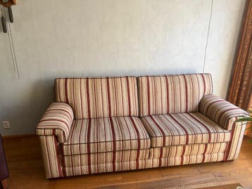 Stijlvolle, warme, stevige 3 persoonsbank. In zeer goede staat. Warme kleurencombinatie, past in veel verschillende stijlen. Stevige kussens, brede leuningen. Zit erg comfortabel. 200Cm breed, 90 cm d