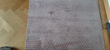 Een stuk hoogwaardig nieuw tapijt van 4,5 bij 0,9 meter. Over gehouden.