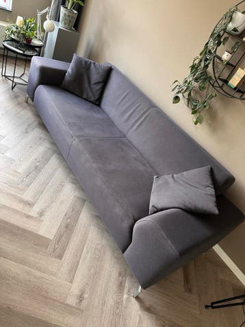 Mooie en comfortabele 3-zits bank in antracietgrijze kleur. De bank is ongeveer 245 cm breed en 90 cm diep, perfect voor een gezellige zithoek. Inclusief 2 bijpassende kussentjes voor extra comfort en