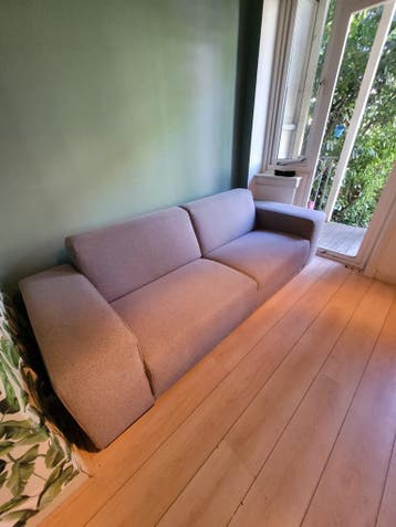Gratis tweezitsbank, licht grijs, 220 breed, 85 diep, 75 hoog. Wel echt gebruikt, maar gaat voor een student zeker nog een ronde mee! Ophalen uiterlijk 1 mei in amsterdam west.