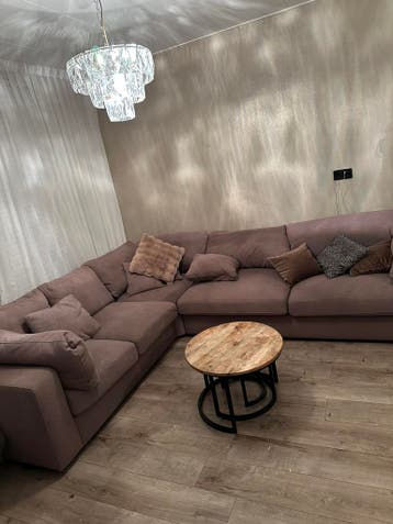 Gratis grote bruine hoekbank 2.55X3.20(Plusminus) excl. Kleine kussentjes die je ziet op de foto. Hoezen kunnen gewassen worden. Komt uit een dier en rookvrij huis.