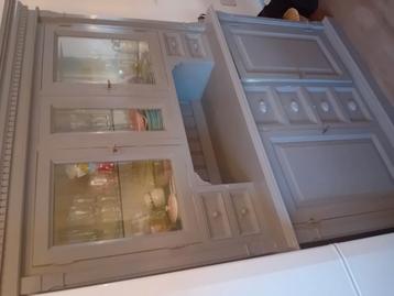 Grijze buffetkast grijs zelf geverfd gratis op te halen. Bestaat uit 2 delen. 1 Deurtje zit los maar is te repareren