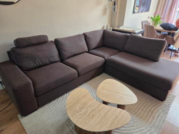 Mooie hoekbank in goede staat, inclusief een comfortabele hoofdsteun. Bank is in twee delen en ook neer te zetten als twee delen. Afmetingen: breedte 2.25 Meter lengte 2.85 Meter zithoogte 0.47 Meter