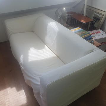 Kiplan bankje van ikea, met wasbare hoes (en moet ook gewassen, heeft koffievlekken!)