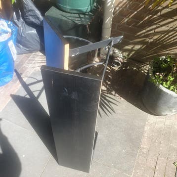 Twee houten (boeken?)Plankjes, op te hangen, van ikea