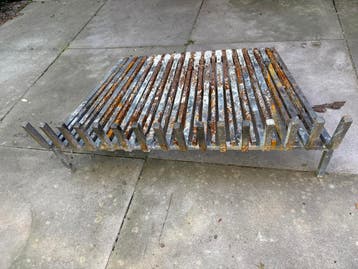 Gratis op te halen: een stevig ijzeren rooster, ideaal voor in een open haard, vuurkorf of als decoratie. Het rooster heeft wat roestplekken, maar is nog functioneel en kan eventueel worden opgeknapt.