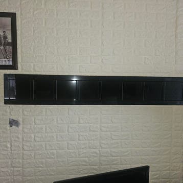 Mooie hoogglans zwarte opbergkast voor cds kan hangend maar ook staand worden gebruikt maten, hoog cq lang 1,46m breed 23cm diep. 22 Cm