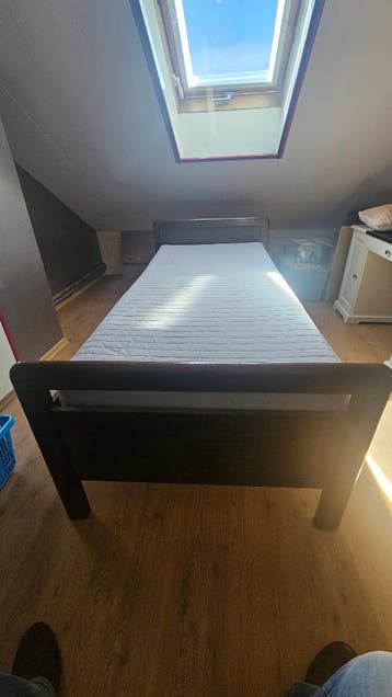 Nog redelijk net seniorenbed met verstelbare spiraal bodem, (zie foto) te verstellen d.m.v trekkoord dus niet electrisch. Eenvoudig te (dé)monteren. Incl gebruikt maar schoon matras. Gratis af te hale