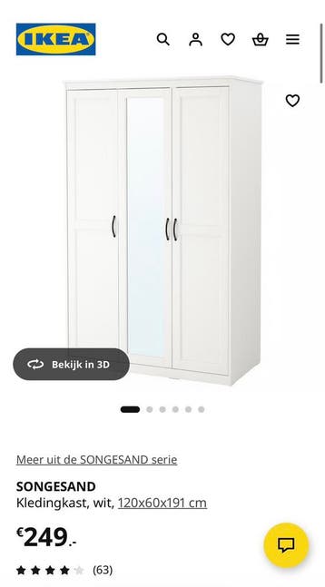 Gratis ikea songesand kledingkast in goede staat. De kast is stevig en functioneert zoals het hoort. Ideaal voor extra opbergruimte in slaapkamer of logeerkamer.