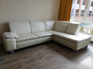 Witte skyleren hoekbank verkleurd met lichte beschadiging zie foto 2 met reinigen zeker nog geschikt voor een starter of student ophalen is in eygelshoven