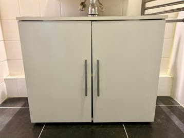 Gratis badkamerkastje met een eenvoudig en strak design. We verkopen het kastje vanwege een verhuizing. Het kastje is gebruikt, maar is nog prima bruikbaar. Ideaal voor het opbergen van badkamerartike