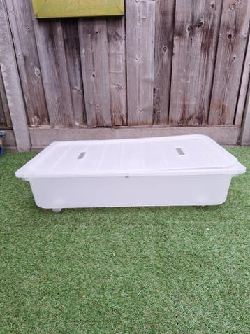 Deze praktische opbergbak op wieltjes is ideaal voor het opbergen van diverse spullen. Dankzij de wieltjes is de bak eenvoudig te verplaatsen, wat hem perfect maakt voor onder een bed, in een kast of