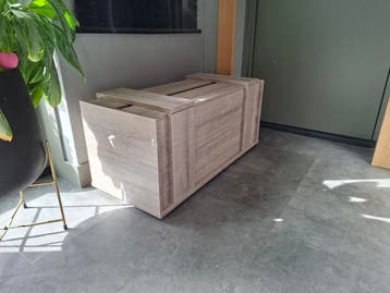 Speelgoed kist spaanplaat met houtnerf ziet er uit als nieuw. Hoog 47cm breed.44 Cm lang 102cm gratis af te halen in nijkerk