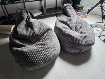 Twee nooit gebruikte zitzakken. Conditie als nieuw met doos extra vulling indien nodig.