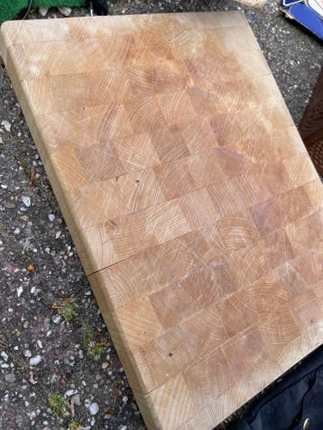 Deze robuuste houten snijplank is perfect voor dagelijks gebruik in de keuken. Gemaakt van duurzaam hout, biedt het een stevig oppervlak voor het snijden van diverse ingrediënten. De plank is gebruikt