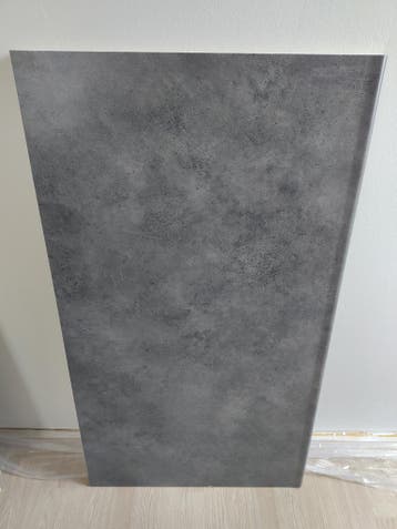 Donkergrijs aanrechtblad. Breedte 105,7 cm diepte 59,9 cm dikte 2,8 cm van de hornbach; ik moest 2 meter kopen maar zoveel had ik niet nodig.