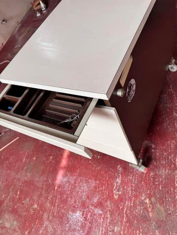 Handig verrijdbaar ladekastje met de afmetingen: hoogte 68 cm (inclusief wielen), breedte 42 cm en diepte 78 cm. Ideaal voor extra opbergruimte kantoor of werkkamer. Staal met coating