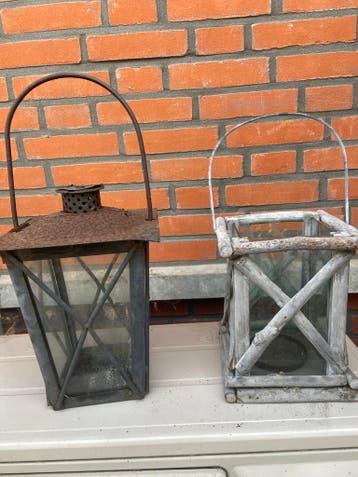 Twee rustieke lantaarns gratis af te halen. De metalen lantaarn is roestig en de houten lantaarn heeft een verweerde look. Beide zijn ideaal voor een opknapbeurt of voor decoratie in een landelijke of