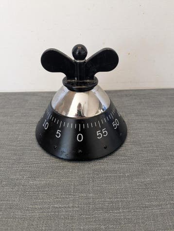 Zwarte alessi keukenwekker. Bovenkant laat soms los, werkt functioneel prima.