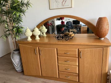 Oude directie stoelen, hout met wol bekleed - GRATIS