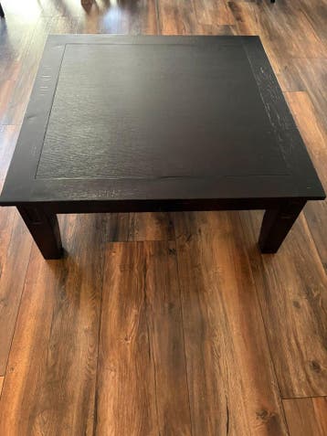 Donkerbruin teakhout salontafel 110/110 45 hoog bijzettafel 60/60 45 hoog