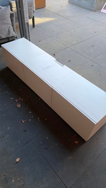 Pax tv meubel wit. 3 Lades. Let op links buiten 2 gaatjes