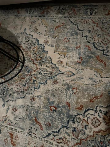 Dit prachtige tapijt combineert een modern design met klassieke oosterse patronen, wat zorgt voor een unieke en stijlvolle uitstraling. De kleuren grijs, blauw en beige vloeien harmonieus samen en pas
