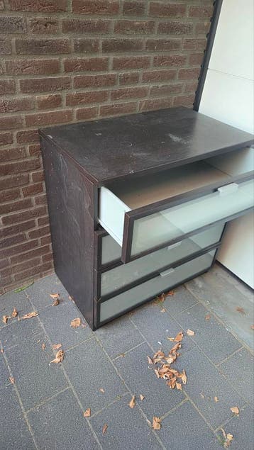 Gratis af te halen. Ladekast. Heeft altijd in garage gestaan dus er zitten een aantal vlekken op (aan bovenzijde en linkerzijde). Lades zijn schoon en werken goed.