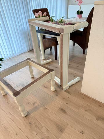 Set van stevige eikenhouten poten, ideaal voor het creëren of restaureren van een eetkamertafel, salontafel of bijzettafel. De poten zijn behandeld maar bieden de mogelijkheid om ze naar eigen smaak a