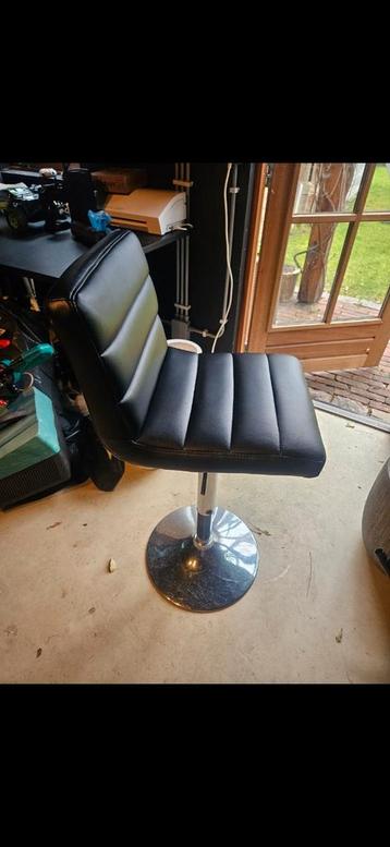 Barkruk met een afgebroken voetsteun en lichte schade aan de zitting. Verder is de kruk nog in redelijke staat.