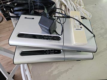 Aangeboden: een set van twee bose lifestyle 5 systemen, inclusief twee subwoofers en twee boxen. De werking van de set is onbekend, de beide lifestyle gaan aan, verder niet getest ideaal voor de handi