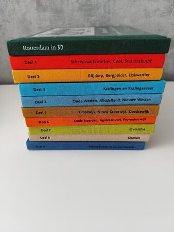 Boeken over rotterdam op deel 4 en 7 zitten stickers met ' drukmodel' op ophalen inladen en wegwezen geen gezeur aan de deur en geen reservering!