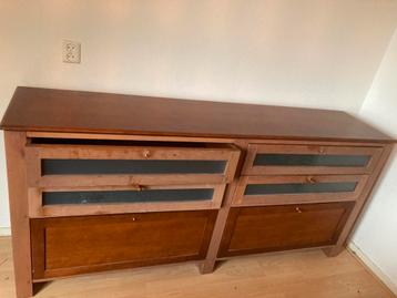 Mooie houten ladekast aangeboden. 4 Diepe laden + 2 klepvakken. Hoogte 70 cm, diepte 50 cm, breedte 200 cm.