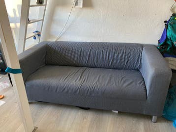 Grijze bank, gebruikt. 175Cm breed, 85cm diep. Moet weg. Zelf ophalen en vervoeren.