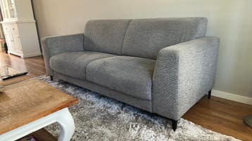 3 zitsbank stof, kleur lever met hoekpoot zwart . Breed 2.05 Diep 0.90