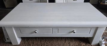 Gratis af te halen: zware salontafel met 2 lades die aan beide zijden uitschuiven. Afmetingen: l136xb68xh45cm. De tafel is niet demontabel, dus houd hier rekening mee met vervoer.