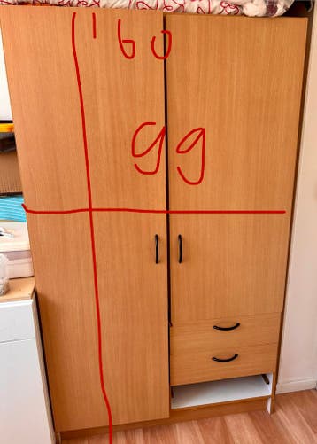 Gratis kleding kast met hang gedeelte en plank gedeelte. Mist een lade. Zelf demonteren. Afmetingen zie foto