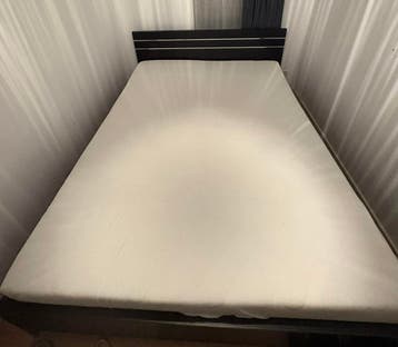 Hierbij gratis aangeboden: twee persoonsbed van 160cm bij 200cm in de kleur zwart. Het bed is in losse stukken te monteren. Hoofdbord los van het bed, waarbij de planken in 3 losse onderdelen zitten m