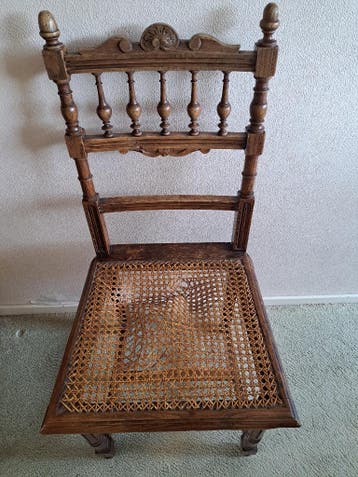 6 eetkamerstoeltjes gratis. Zittingen moeten worden hersteld. Opnieuw met riet of andere bekleding