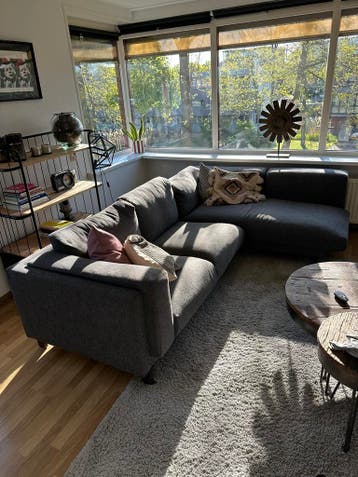 Comfortabele grijze hoekbank te koop. De bank is gebruikt, maar nog in goede staat. Ideaal voor een ruime woonkamer. Afmetingen: 270 cm breed en 170 cm diep (loungegedeelte). Perfect om heerlijk op te