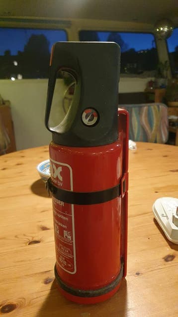 Poederblusser 2kg. Dd: 89-06 ongebruikt. Inclusief muurbeugel.