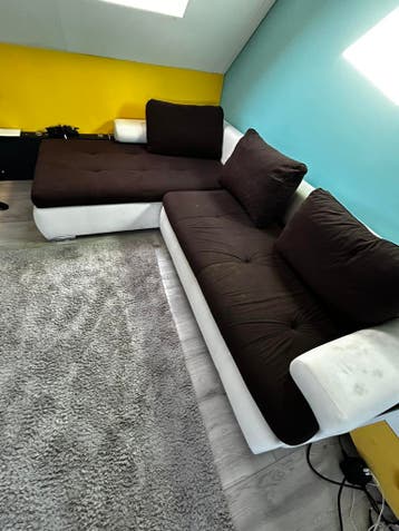 Gratis 3 personen slaapbank, vertoont gebruikssporen, recht of linker hoek met opbergruimte