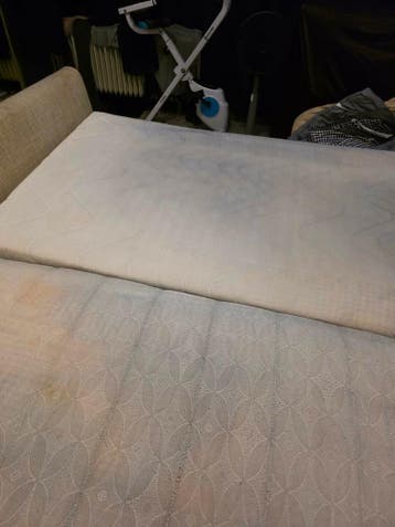 Twee gebruikte matrassen aangeboden. Ze zijn 80 cm breed en 200 cm lang. Ze zijn gebruikt en hebben zichtbare vlekken, zoals te zien is op de foto's. Ideaal voor een logeerbed of als tijdelijke op