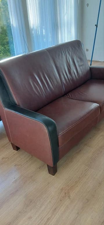 Deze comfortabele bruine leren bank is nog in prima staat en zoekt een nieuwe eigenaar. Ideaal voor wie op zoek is naar een betaalbare en degelijke bank. Gaat weg ivm verhuizing
